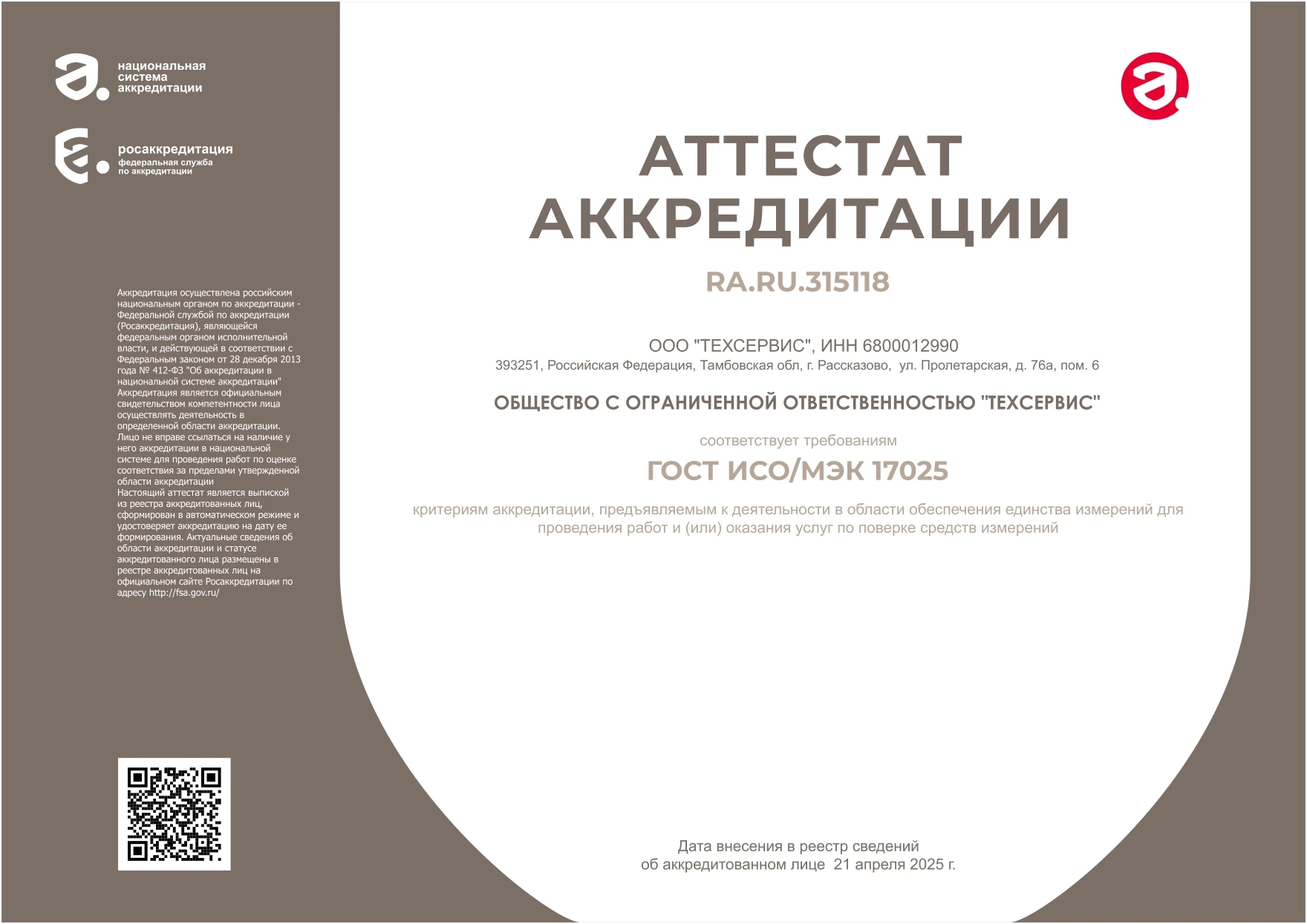 Это главный документ нашей организации. Мы получили право официально работать со счетчиками. Изучите нашу карточку аккредитованного лица на портале Федеральной службы по аккредитации —«Росаккредитация».